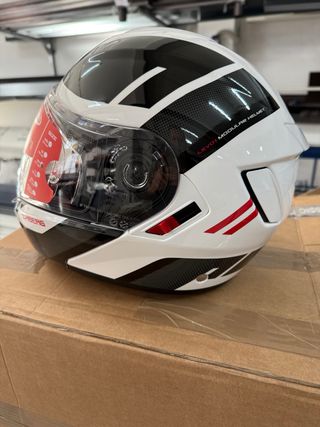 Casco modulare Caberg Levo X, ideale per motociclisti. - Colore bianco con inserti neri e rossi. - Design moderno e sportivo. - Omologato per uso stradale.con etichetta mai usato , nessuna imperfezione