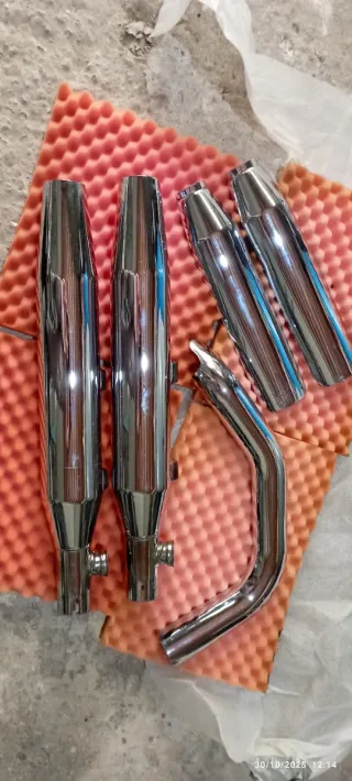 Marmitte cromate per Harley Davidson in buone condizioni. Solo una un po' , graffiata nella parte sotto , quindi non visibile - Set di marmitte. - Finitura cromata lucida.