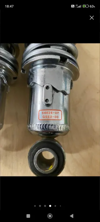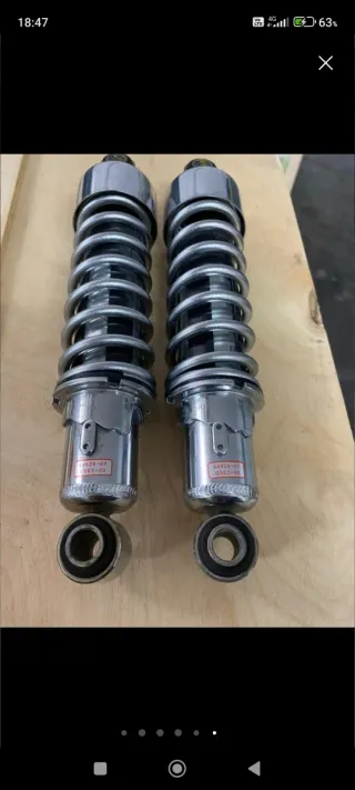 Coppia di ammortizzatori per moto Harley Davidson. Pari al nuovo - Finitura cromata lucida. - Molla elicoidale. - Targhetta con codice 94426-07 5452-00 su un ammortizzatore e 94426-07 5452-01 sull'altro.