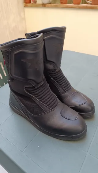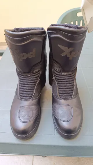 Stivali da moto usati 2 volte marca Xpd X-Journey H2Out in colore nero. - Materiale esterno in pelle e tessuto. - Membrana H2Out impermeabile e traspirante. - Protezioni su malleoli e stinco. - Suola in gomma antiscivolo. - Chiusura con zip e velcro.
