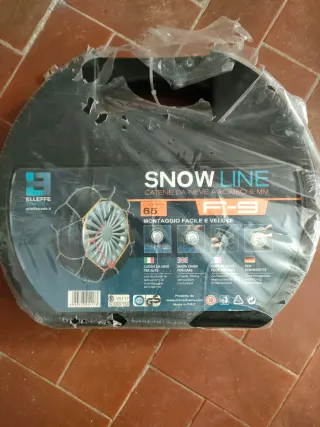 Set di catene da neve Elleffe Snow Line, modello F-9. - Misura 65. - Montaggio facile e veloce. - Spessore 9 mm. - Rombo. - Per auto.