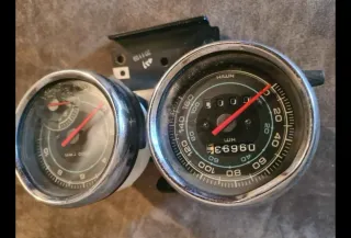 Contachilometri e contagiri per Piaggio Carnaby 300. - Contachilometri con indicazione in KM/H. - Contagiri con indicazione in 1000 RPM. - Display digitale per il chilometraggio.