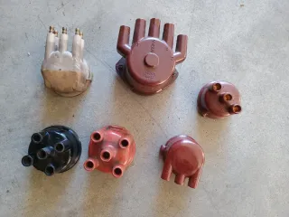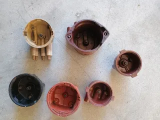 Vendo in blocco 6 calotte per spinterogeno in bachelite come da foto Sono una rimanenza di magazzino e non sono in grado di dire a quali auto appartengono. L'interessato dovrebbe controllare le foto e decidere in base alle sue esigenze
