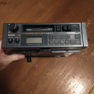 Autoradio Philips modello 789 con lettore audiocassette. - Funzione Hi-Power 20W + 20W. - Uscita Line Out. - PLL Quartz Tuning. - Autoreverse. - Autostore. - Bande FM-MW-LW. Non so se il nastro scorre senza problemi, potrebbe essere da cambiare la cinghia di trasmissione.
