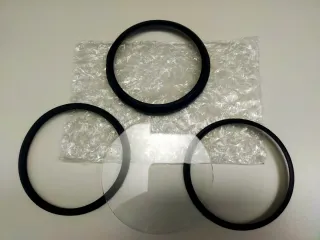 Vetro per contachilometri Vespa PX. - Anelli neri di plastica. - Vetro trasparente. - Ghiera metallica. Circonferenza 80 MM. La ghiera metallica è utilizzabile anche se presenta delle ammaccature.