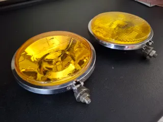 Coppia di fendinebbia Cibié con lente gialla.diametro 18 cm come nuovi Le coperture sono rovinate di cui una è spaccata come da foto - Montaggio universale. - Cromatura lucida.