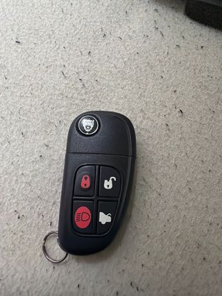 Chiave per auto Jaguar. - Logo Jaguar sul fronte. - Pulsanti per chiusura, apertura, luci e baule.