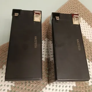 Set di due batterie ricaricabili Energy Safe. - Voltaggio: 12V - Capacità: 5Ah - Tecnologia AGM
