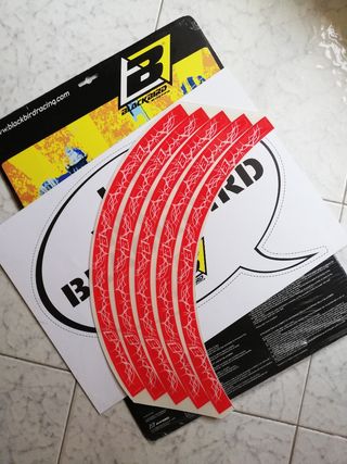 5 Adesivi rosso bianco per cerchi moto Blakbird più cartelli pubblicità