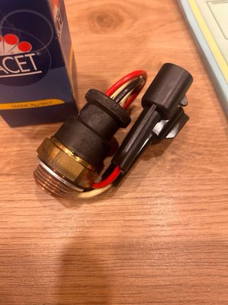 Sensore bulbo ventola marca Facet, Made in Italy, per Fiat Tipo. - Compatibile con motori 1.4 i.e., 1.6 e 1.8. - Connettore a due pin con cavi rossi, bianchi e neri.