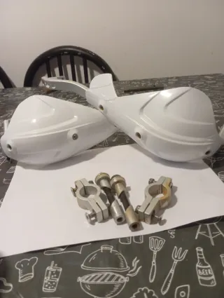 Set di paramani per moto, colore bianco. - Materiale plastico resistente. - Staffe di montaggio incluse.