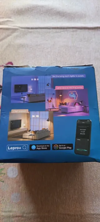 Set di 4 lampadine smart LED Lepro, modello B1. - Potenza: 8.5 W (Pons), 0.49 W (Prel). - Flusso luminoso: 806 lm. - Colore: RGB+CCT (2700 K-6500 K). - Durata: 15000 ore. - Attacco: E27. - Dimensioni: Ø60 x 109 mm.