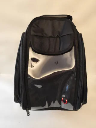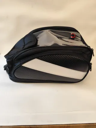Borsa da serbatoio per moto Dracarys con un design moderno. - Inserti bianchi a contrasto. - Ampia tasca trasparente superiore. - Materiale resistente con finitura effetto carbonio.