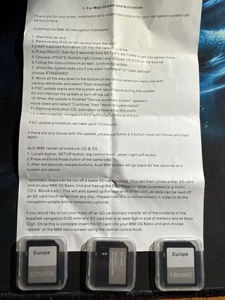 Guida AUDI MMI 3G BASIC/HIGH/PLUS Nel pacco troverai 2 SD (1 da 8Gb e 1 da 32Gb) Solo per audi con lettore di SD Guida in italiano/Spagnolo con procedura da eseguire Compatibilità: A4 S4 B8 2008 A4 ALLROAD 2010 A5 S5 CAB 2010 A5 S5 COUPE/SPORTBACK 2008 A6 S6 2009 A6 ALLROAD 2007 A7 A8 S8 2008 Q5 2009 RS5 2010 RS6 2008 - 2011 Ciao, prima di acquistare puoi inviarmi le informazioni che trovi in : car--›setup--> opzioni---> informazioni sistema 🚚 Spedizione Immediata! 📦 Pacco imballato con molta cura e professionalità! 👉Sei interessato? Scrivimi e ne parliamo📩
