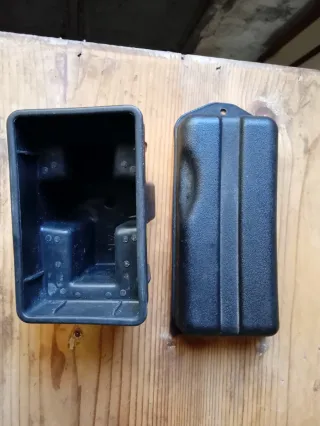 Vano porta batteria e relativo coperchio per Vespa ET2. - Vano in plastica nera. - Coperchio in plastica nera con nervature.