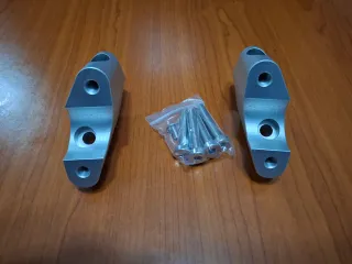 Riser Wunderlich per manubrio Ducati Desert X, per una posizione di guida più arretrata (24 mm) e rialzata (44 mm). Lavorati dal pieno. Mai usati. - Materiale: Alluminio - Colore: Grigio - Include viti di montaggio