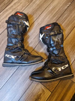 Stivali da motocross TCX, taglia 41. Usa 8 come alpinestars gaerne sidi acerbis forma o altre. Già lavati - Chiusura con fibbie regolabili. - Protezioni integrate. - Design robusto.
