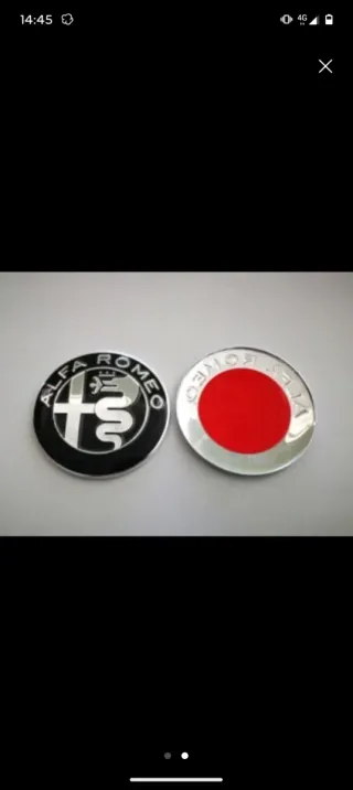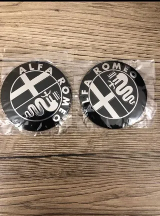 Coppia di stemmi Alfa Romeo. - Colore nero con dettagli argentati. - Design circolare con logo Alfa Romeo.