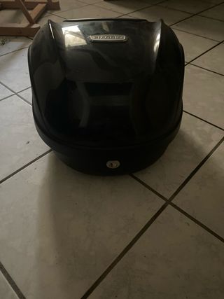 Bauletto porta casco usato, ma ancora in buone condizioni e perfettamente utilizzabile. - Marchio Aprilia visibile. - Spazio sufficiente per un casco.