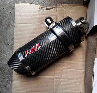 Scarico in carbonio per Honda CB500F. - Design sportivo in fibra di carbonio. - Logo FUEL in rosso. - Fascette di fissaggio in acciaio.