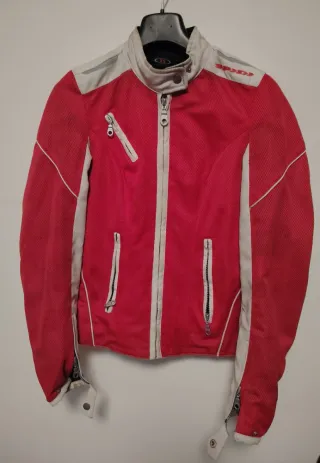 Giacca da moto da donna Spidi, perfetta per la strada. - Colore rosso e bianco. - Taglia XS. - Protezioni applicabili per spalle e gomiti.