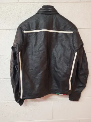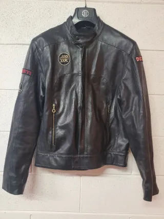 Giacca Ducati heritage con stemmi vintage (alcuni sono stati rimossi) Vera pelle prodotta da dainese, non ha protezioni da moto. Taglia M, larghezza spalle 45 cm, fianchi 53 cm, lunghezza 62 cm, manica 64 cm.