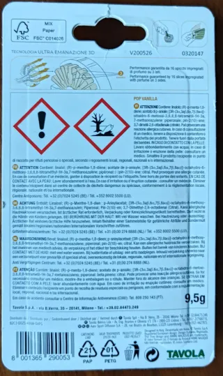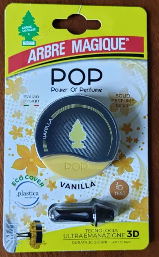 Profumatore per auto Arbre Magique POP alla vaniglia. - Fragranza: Vaniglia - Modello: POP - Durata: 30 giorni - Tecnologia: Ultra Emanazione 3D - Design italiano