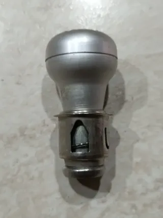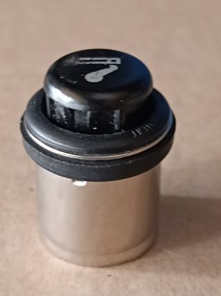 Accendisigari universale per auto. - Parte superiore in plastica nera con simbolo. - Corpo in metallo lucido. - Guarnizione in gomma.