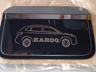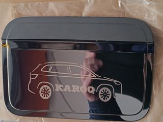 Accessorio decorativo per auto con incisione. - Copertura sportello carburante - Design con silhouette di un'auto. - Nome KAROQ inciso al centro. - Finitura lucida.