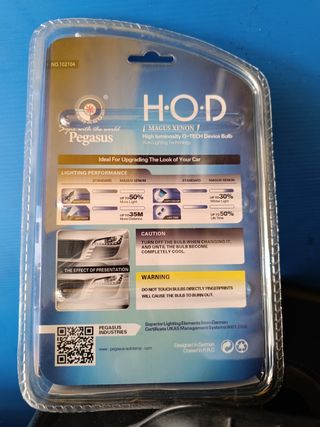 Lampadine per auto H4 HOD Magus Xenon. - Potenza 100/90W. - Temperatura colore 5500K. - Tecnologia Xenon Fueled.