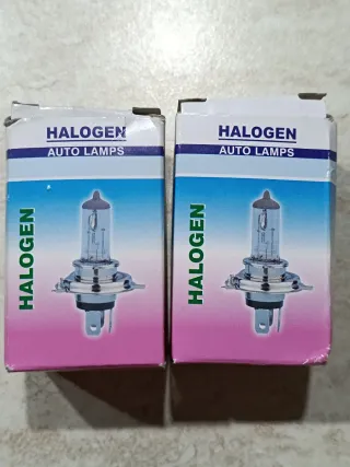 Set di due lampadine alogene H4 per auto. - Potenza: 90/100 watt. - Tipo: H4. - Tecnologia: Alogena.
