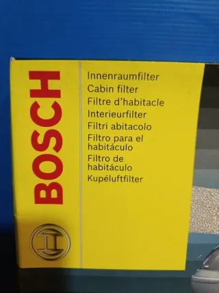 Filtro abitacolo Bosch per auto. - Modello: Innenraumfilter - Altre denominazioni: Cabin filter, Filtre d'habitacle, Interieurfilter, Filtri abitacolo, Filtro para el habitáculo, Filtro de habitáculo, Kupéluftfilter.