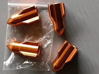 Set di tappi per valvole delle ruote. - Colore: Rame - Materiale: Lega di alluminio.