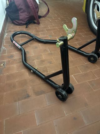 Carrello per moto in ottime condizioni, praticamente nuovo. Usato 4 volte. Vendo per cambio moto - Struttura robusta in metallo nero. - Ruote per facilitare lo spostamento. - Supporti regolabili per il sollevamento.