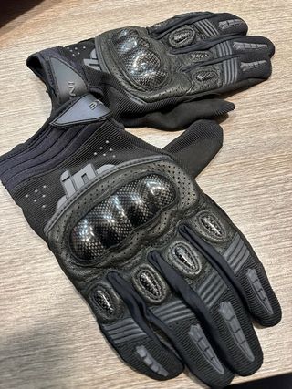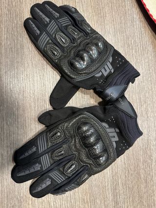Guanti da moto con protezioni in carbonio. - Design nero con dettagli in carbonio. - Materiale traspirante. - Chiusura regolabile.