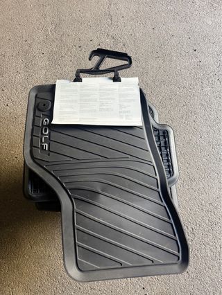 Set di tappetini in gomma originali per Volkswagen Golf 8. - Materiale: Gomma resistente. - Design: Bordi rialzati per contenere sporco e liquidi. - Logo: GOLF integrato sul tappetino.
