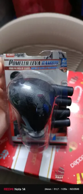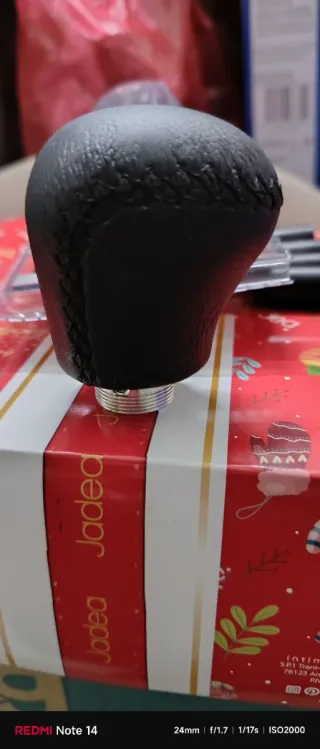 Pomello per cambio marce in pelle nera. - Finitura in pelle. - Base in metallo filettato.