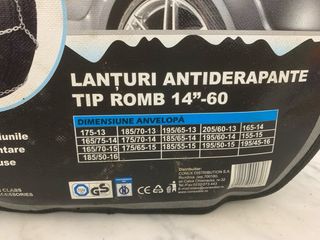 Set di catene da neve Mega Drive per pneumatici. - Modello: Tip Romb 14-60. - Dimensioni compatibili: 175-13, 185/70-13, 195/65-13, 205/60-13, 165-14, 165/75-14, 175/70-14, 185/65-14, 195/60-14, 155-15, 165/70-15, 175/65-15, 185/55-15, 195/50-15, 195/45-16, 185/50-16. - Include istruzioni di montaggio. - Marca: Mega Drive. - Tipo: Rombo. Praticamente nuove mai usate vendo a 10 euro
