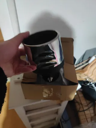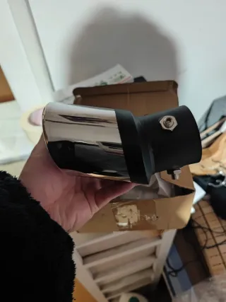 Terminale di scarico per auto con finitura cromata lucida. Adatto per tutti tipi di auto. - Materiale: acciaio inossidabile cromato. - Design moderno e sportivo. - Morsetto di fissaggio incluso.