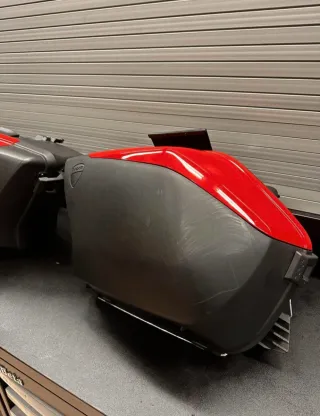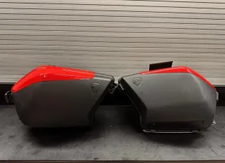 Coppia di valigie laterali per Ducati Multistrada 1200 dal 2010 al 2014 cover di colore rosso. - Logo Ducati presente su entrambi i lati. - Materiale plastico resistente. - Privi di serrature.