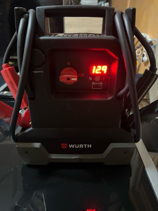 Avviatore portatile marca Wurth, modello 12V. - Colore nero e grigio. - Display digitale. - Cavi con pinze rosse e nere inclusi.