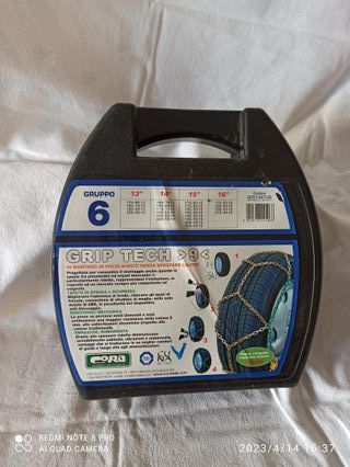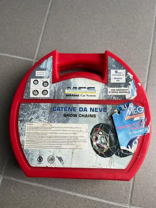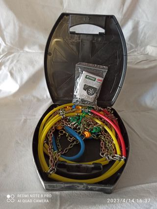 .Causa cambio auto vendo set di catene da neve per auto, complete di custodia per cerchie da 13" - 14" - 15 e 16" (vedere le misure esatte nelle foto) NUOVE, mai usate SPESE DI SPEDIZIONE NON INCLUSE - Catene in metallo con maglie robuste. - Tubi colorati (giallo, rosso, blu) per facilitare l'identificazione. - Chiusura a scatto e regolazione. - Custodia in plastica rigida per il trasporto.