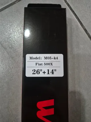 L'oggetto nell'immagine è una spazzola tergicristallo, un componente essenziale dell'auto. Progettata per pulire il parabrezza da pioggia, polvere e detriti. La confezione indica che si tratta di una coppia di spazzole di dimensioni 26 e 14 pollici. Esistono due tipi principali: quelle tradizionali "ad archetto" e le moderne "Flat Blade". Set 2 pezzi ANTERIORI