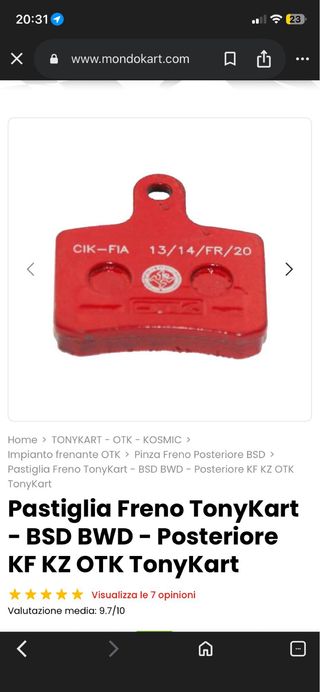 Pastiglie Freno Tony Kart BSD Posteriori Nuove