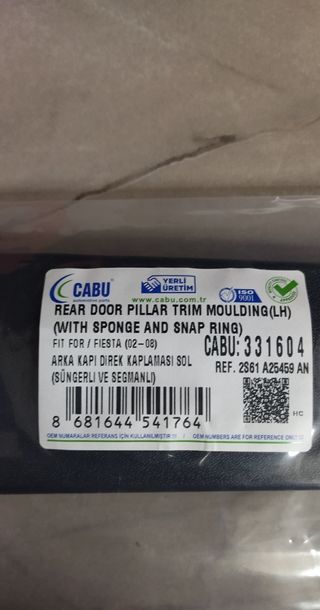 Copertura montante porta posteriore lato sinistro (lato conducente) non verniciato - plastica nera. L’oggetto è NUOVO, mai usato, non danneggiato e non usurato. Tipo di carrozzeria: 5-porte Modello di auto: Ford Fiesta V / Mk6, anno di produzione: 2002-2008