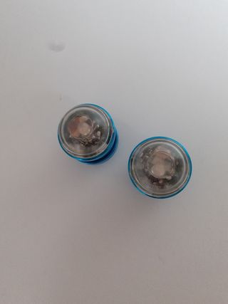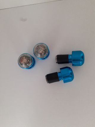 Set composto da: • n.2 bilancino da manubrio per scooter-moto in ergal, colore azzurro (misure: H 4 cm, diametro 1,4 cm); • n.2 piretti Led, colore azzurro. Vintage.