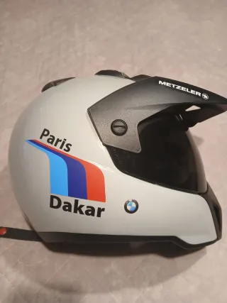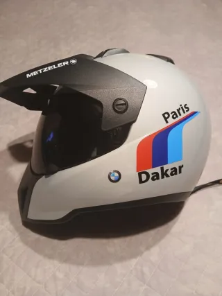 Casco BMW Enduro, taglia 61/62. Design ispirato alla Parigi-Dakar con grafiche Metzeler e BMW. - Colore: Bianco - Taglia: 61/62 - Grafica: Parigi-Dakar - Marchio: BMW - Visiera scura inclusa BMW Casco Enduro tg.61/62 color bianco perlato o grigio a seconda della luce, visiera medio scura tenuto in modo impeccabile privo di graffi e lavato di frequente...silenzioso caldo e ben ventilato, 250 €