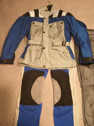 Completo BMW Savanna taglia 52 con pantaloni Rally. - Giacca Savanna blu, grigia e nera. - Pantaloni Rally blu, grigi e neri. - Cintura in vita sulla giacca. Completo moto BMW Giacca Savanna tg 52 con tutte le protezioni , ben ventilata munita di membrana interna xil periodo freddo e ricca di parecchie tasche molto ampie esterne ed interne. Abbinata ad un calzone BMW Rally 2 pro tg 52 dotata pure lei di membrana interna xil periodo freddo e protezione x ginocchia e fianchi, tenuto benissimo senza difetti o problemi . Vendo anche separatamente. Giacca 200€ calzoni 150€