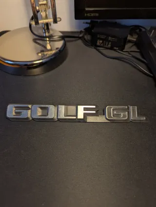 Stemma originale per il posteriore di una VW Golf GL. - Design in metallo. - Scritta Golf GL in rilievo. Vendo Logo Stemma Badge Targhetta Sigla Emblema Fregio Scritta VW Volkswagen Golf GL. Scritta Originale Volkswagen Golf gl.