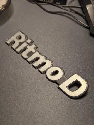 Stemma Ritmo D in metallo originale d'epoca. - Design in rilievo con finitura metallica. - Scritta Ritmo D ben definita.